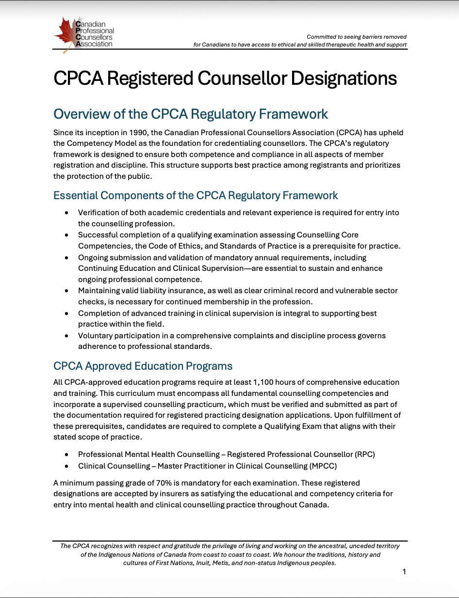 Please check with your employer or insurance provider to confirm whether the MPCC Provisional designation is covered under your plan. Below is a support document from the CPCA, created specifically for insurance companies, highlighting recent designation changes. Please share this document with your insurance provider to ensure the best opportunity for coverage.